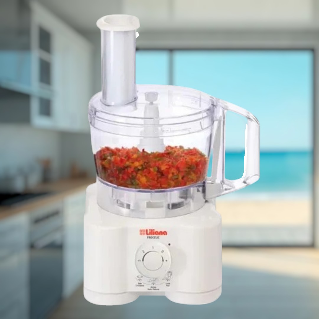 La procesadora Liliana Procelic AM640 (650W) es un electrodoméstico compacto y multifuncional, ideal para picar, amasar, rallar y rebanar. Cuenta con un bowl de 1L, jarra licuadora de 1.5L, 3 velocidades más pulsador para mayor control, y accesorios intercambiables. Es un equipo nacional diseñado para facilitar tareas de cocina.